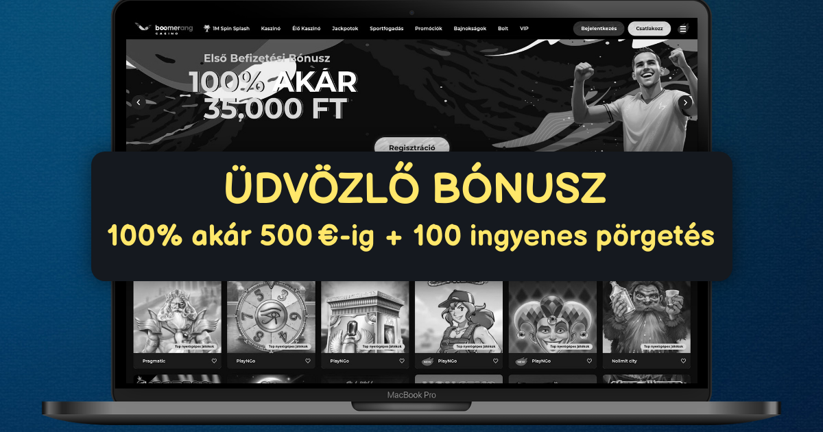 Üdvözlünk a Boomerang Casino izgalmas világában! Ha Magyarország piacvezető online kaszinóját keresed, akkor a Boomerang Casinónál garantáltan jó helyen jársz. Merülj el több száz izgalmas nyerőgép, élő kaszinó játék és változatos promóció között, hogy minden pillanatban felejthetetlen játékélményben legyen részed a Boomerang Casinón!